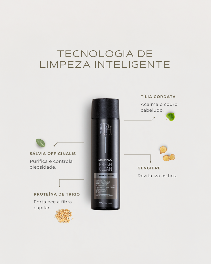 Limpeza equilibrada e sensação de frescor. Fórmula com extratos botânicos e ativos naturais que purificam suavemente o couro cabeludo, removendo impurezas e controlando a oleosidade sem ressecar os fios. Ideal para manter o equilíbrio do couro cabeludo e a leveza dos cabelos.